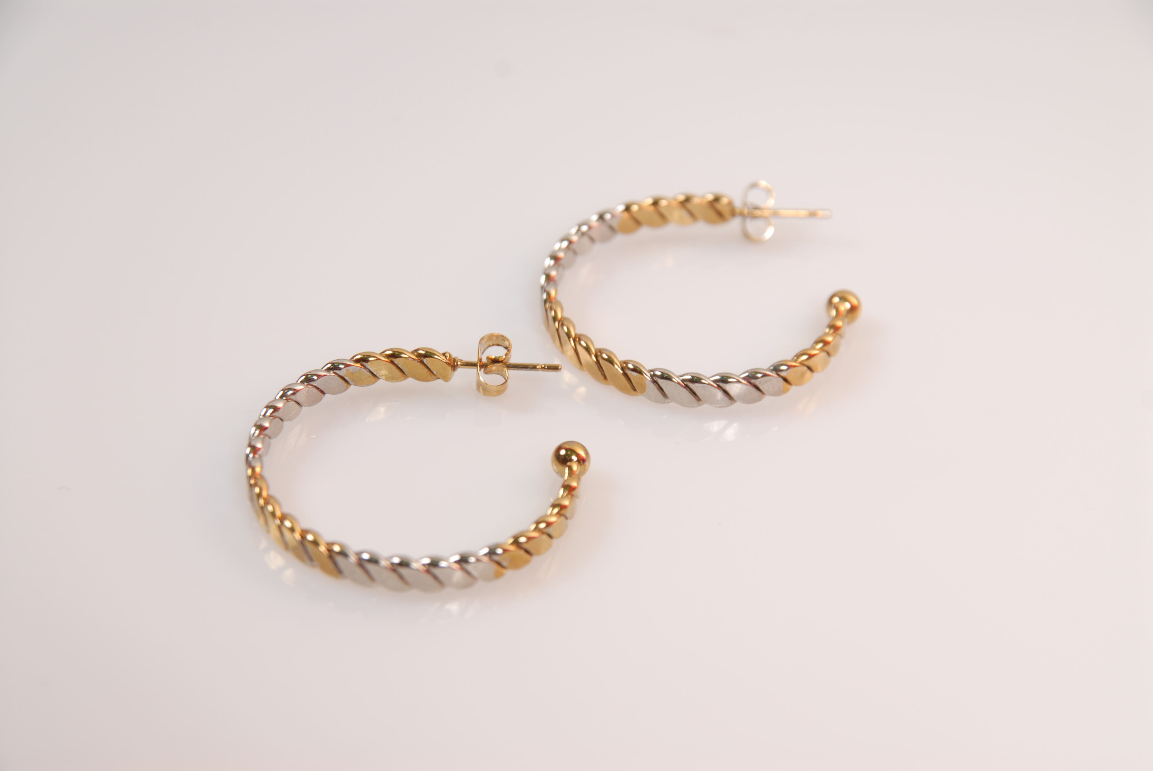 Κρεμαστά Σκουλαρικια δίχρωμες καρδιές
